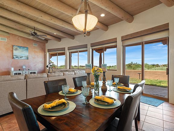 Beautiful, single-level Eldorado home with views, great floorplan and pre-inspected! Two living areas, both with vigas and kiva fireplaces. Den and office have large built-in bookcases. In-floor, natural gas radiant heat and 4 splits for air conditioning and heat. Light and bright studio has a cement floor and is detached from the house with two entrances and has a split for heat and AC - can also be accessed from the garage. Front and back walled courtyards with the rear portal running the length of the property. Generous kitchen has views, stainless appliances, loads of counter space and storage. California closet systems in each bedroom. Home has been pre-inspected and most repairs are complete. Report available on request. Recent roof maintenance with 1-year warranty. NO STEPS. NO KITEC. Radiant heat is Onix. Domestic plumbing is copper. Weil-McClain boiler and Bradford White water heater, both new in 2016. Recent new hot water recirculating pump installed. Proper laundry room with sink and storage. New shed is 10' x 12. Septic inspection is completed and report in supplements. Lot corners are flagged. Four raised garden beds. This home has abundant storage. Sparkling clean and ready to go!