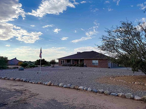 Welcome to your dream property! Spacious 5-bedroom, 3-bath, 3-car garage brick home on almost 2 acres! This property is horse friendly and offers numerous updates, including $65K solar panels installed in 2021, new roof in 2024, remodeled baths, new appliances in 2022, fresh paint in 2023, and updated lighting/plumbing fixtures. Interior features include tile flooring, carpet/vinyl plank in bedrooms and baths, tile countertops, abundant kitchen cabinets, large living room, formal dining, and an office off the primary suite. The primary bath boasts a huge walk-in shower. Extras include a storage shed, fruit trees, above-ground pool perfect for summer fun and entertaining. new well pump 2019, water softener 2025, and RO system. Appliances include an electric stove, refrigerator, and built-in microwave. Move-in ready with modern updates, plenty of space, and country charm!