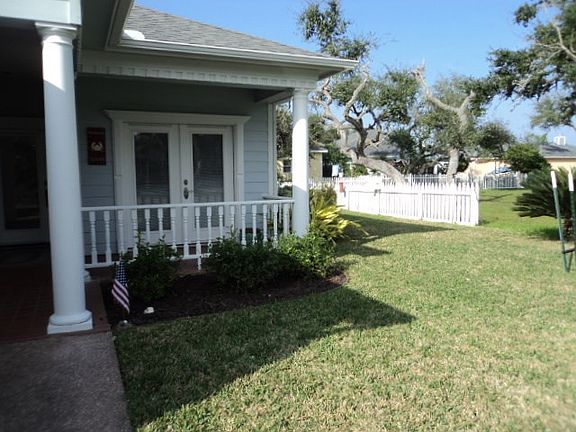 Heron's Roost, beautiful, gated and well maintained subdivision. A block or two walk to Fulton Beach Rd. Home has an open floor plan - 2b, 2b, 2 car garage. Extra room used as an office or could be a 3rd bedroom. High ceilings and wood laminate floors throughout most of the home. Gas stove and movable island in kitchen. Ceramic tile in bathroom and berber carpet in the bedrooms. Covered and screened side patio on slab. Back of home, another patio and open area laid with red brick bordered with a white picket fence. Five patio doors in home from bedrooms, office, living room, kitchen and dining area. Front porch has red tiles with white railing and covered entrance to front door.