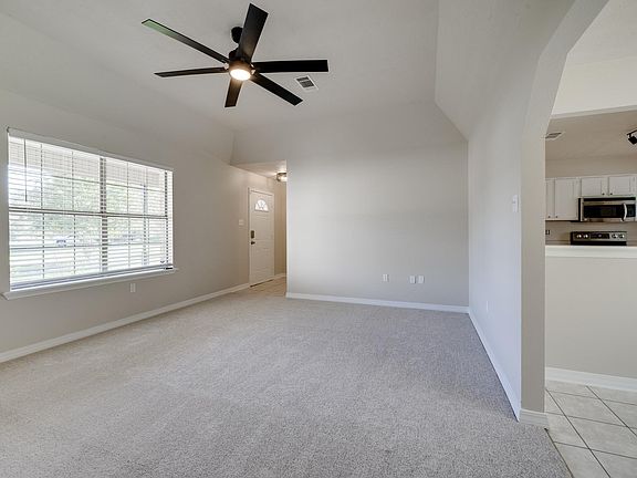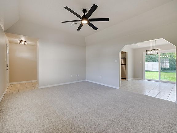 This precious move-in ready 3-bedroom, 2-bath home offers nearly 1,500 sq. ft. of comfortable living space on a private, approximately one acre lot at the back of a quiet loop drive. Inside, you’ll love the fresh new carpet, new paint, new light fixtures, new blinds and bright living area that flows into a charming kitchen featuring stainless steel appliances and a new dishwasher. The dining area is a great size with beautiful new glass sliding doors that access the backyard. The primary suite includes its own ensuite bath, while two additional bedrooms share a nice hall bath. Outside, enjoy plenty of room to spread out with a great yard, a pretty rock lined flowerbed out front, two storage buildings, a large covered carport, and peaceful surroundings that provide both privacy and convenience.