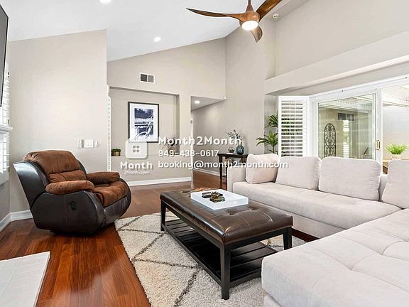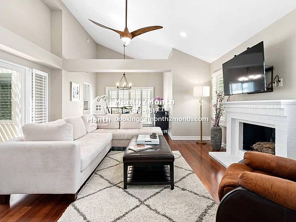 Relax during your stay in this enchanting cottage-style home in the highly desirable Woodbridge community in Cedarlake, Irvine, CA. This fully-furnished, single-level charmer is the epitome of comfort and style, located in the heart of the Woodbridge lake loop trail, just steps away from the serene lake waters. As soon as you enter, you'll be greeted by the warm and inviting atmosphere created by the beautiful gleaming cherry-finished wood floors and plantation shutters. The king-size master suite is a luxurious retreat, complete with a walk-in closet and private bath, while the two standard bedrooms offer plenty of space for other family members or guests. The spacious living room boasts vaulted ceilings and a fireplace and opens to the lovely atrium patio, perfect for relaxing and unwinding. The dining room, with its vaulted ceiling, opens to the kitchen and backyard patio, making it the perfect spot for hosting dinner parties and gatherings. The sunny, open, updated kitchen with an eating area leads to the inviting covered brick patio, ideal for al-fresco dining and enjoying the California sunshine. Guest Access Indoor laundry with access to the two-car garage and a driveway Air conditioning and heater for temperature control Air filtration system for added comfort Location Woodbridge is a coveted lakeside community offering an abundance of amenities, including two beautiful lakes, parks, swimming pools, recreation areas, two tennis centers, tree-lined pathways, and the Woodbridge village center with retail shops, restaurants with al-fresco dining, an outdoor play area, and a movie theater. We invite you to make this lovely home in a wonderful area your own. Enjoy all the amenities and the sense of community that Woodbridge has to offer. Check-in time: 4:00 PM Check-out time: 11:00 AM *These times are strictly enforced. Wherever possible we will work with you to accommodate more flexible check-in/out times. Please contact at least 48 hours prior to arrival/departure if you'd like to extend these times so that we can accurately schedule around different times. *Damage waiver insurance is required (T&C applied) since we do not deduct/withhold security deposit *we charge $1000 refundable utility deposit. A background check is required for bookings made within 14 days.