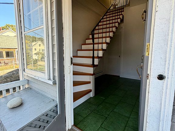 Downtown apartment directly across from the town center with harbor views and a veranda. The entrance is accessed along the canal walkway and this brings you to a entry with tall ceilings and space for jackets and shoes. Up the stairs you come to a well appointed Kitchen with Sub Zero, Viking and Bosh appliances. To the left at the top of the stairs their is a bedroom bathroom and small walk in closet with AC. Tho the right the space opens into a very large great room with a gas fireplace, white washed parquet floor, and very large windows on all sides. The veranda is accessed from the living room and is large enough for a dining space and sitting area. Off the living room you will also find a light filled office/bed room overlooking the town green. On the third floor their is a laundry space, bedroom with stunning harbor views, full bath, as well as a large pass through bedroom/sitting room. This floor also has a very large walk in closet.
