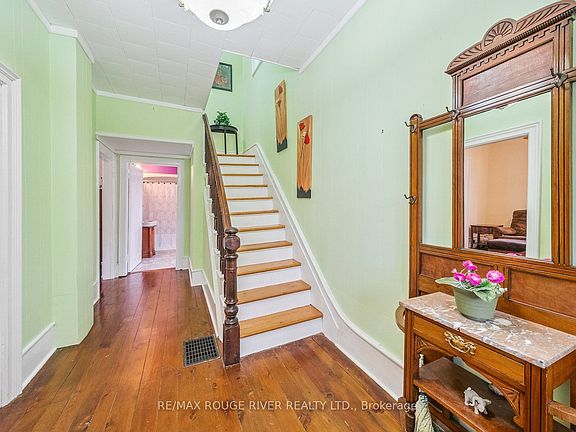 Step into Timeless Charm with Modern Comforts. Have you ever dreamed of living in a century home filled with character, yet updated with todays conveniences? This stunning property, located in the heart of town, offers just that.Boasting 3 spacious bedrooms, 2 bathrooms, and soaring ceilings, this home is designed for both everyday living and memorable gatherings. The inviting family room and expansive dining room provide plenty of space to host loved ones, while the bright, open kitchen flows seamlessly to a patio perfect for BBQs and summer evenings.Set on a double lot, the property includes a double-door garage with its own 100 Amp panel, plus a 200 Amp service for the home. With a metal roof, newer furnace, and central air, this home has been thoughtfully maintained and upgraded over the years to keep it in pristine condition.Location is everythingjust steps from the local arena where you can enjoy hockey, curling, community events, and even access to a car charging station. Families will love being close to schools, the library, and the main strip, while commuters will appreciate the quick 10 minutes to Campbellford and just 1015 minutes to the 401.Adding to its charm, the backyard features the cutest little gate leading straight to towna picture-perfect touch that makes this home truly special.Dont miss the chance to own this rare blend of historic character and modern upgrades. This home isn't just a place to live its a lifestyle waiting for you.