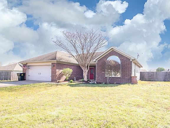 Pretty home in Orchard Hollow Estates offers 3 bedrooms, 2 baths, split plan, large living room with laminate flooring. Kitchen has black appliances, new stove coming, breakfast bar, white cabinets. Master bedroom is spacious and has a tray ceiling, master bathroom has 2 sinks and walk in closet. Guest bathroom also has 2 sinks! Outside is a patio waiting for your furniture to enjoy the Spring weather. Fenced back yard. 2 car garage, all electric! Qualifies for RD. New roof May 2023.