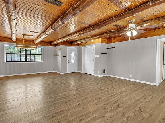 Make this Home Sweet Home! Fall in love with this charming rustic two bedroom, two bath home just outside the city limits. Country living with in-town amenities close by. This home offers a nice floorplan with beautiful cedar wood beams and laminate floors installed in 2019 throughout most of the home. It has a spacious open floorplan with an Eat-In bar, plenty of cabinet and counter space. The mud room has a full-size washer & dryer hookup with room for storage or could be used as a flex room. New aerobic septic installed in 2021. Outside providing added flexibility for how you use the land, the property has a large fenced backyard for pets or play, plus multiple cleared and fenced areas for gardening or livestock. Additional highlights - Chicken coop, 8 dedicated chicken breeding pens with water and electricity, loafing shed, garage-storage workshop, Steel Storm Shelter located under the carport. Whether you're looking to homestead, raise a family, or simply enjoy peaceful country living, this one-of-a-kind property is ready to welcome you home. Schedule your private appointment today!