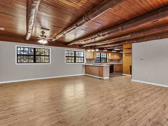 Laminate floorsSpacious open floorplanEat-in barLarge fenced backyardBeautiful cedar wood beamsRustic two bedroom