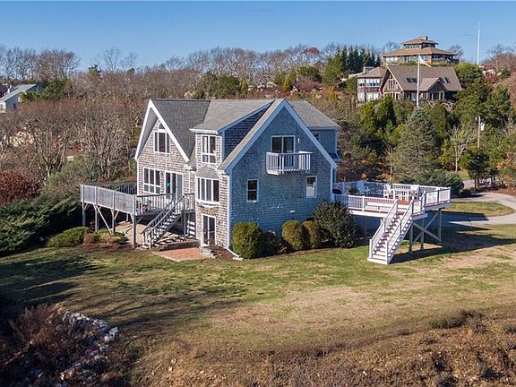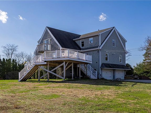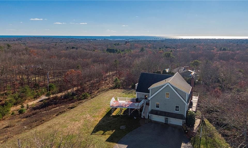 Exceptional architecturally designed home positioned to capture both sunrise and sunset. Surely this is one of the highest elevations in Charlestown with natural sunlight flowing through the home. Perched on nearly two acres, you will be captivated by the amazing views. You can see the windmills on Block Island! There is an expansive deck, perfect for entertaining that highlights these lovely views. The main level is ideal for entertaining with an open concept kitchen /dining/living room with a wood burning fireplace. Plus there is a bedroom and one bath along with an expansive family room with beautiful distant vistas. The second level enjoys an en-suite master bedroom with explosive views of Block Island and the Atlantic Ocean. You will find two bedrooms that share one bath and open den area. The lower level enjoys a walk out enjoying loads of natural sunlight, plenty of storage and a two-car garage, along with an office and fabulous family room with sliders to the yard. The two Town Beaches in East Beach and Charlestown Beach are less than a ten-minute drive.