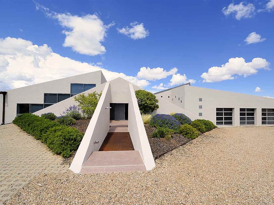 Rarely does a Jeffrey Harnar property with large acreage and magnificent views come on the market. Harnar's designs are highly recognized for their architectural creativity and contemporary spirit. This 4000 sq. ft. post-industrial modern Harnar original was custom built in 1996 and blends glass, metal and concrete to work harmoniously with the dramatic environment. Situated on 13.223 acres in the gated community of La Tierra Nueva, this property offers new perspectives in modern living and functionality. From the impressive entrance with a view to the interior courtyard to the open floor plan, oversized rooms, natural light and captivating living spaces, this property is ideal to showcase large format artwork, simultaneously embracing the expansive mountain views. The generous west facing portal showcases the Serengeti and Jemez Mountains, while the east facing courtyard frames the unique lap pool and Sangre de Cristo Mountain backdrop- perfect for indoor-outdoor living and entertaining large parties or intimate gatherings. Each of the three bedrooms is situated for privacy and serenity. Adjacent to Las Campanas and15 minutes to town and the Santa Fe Airport, this property is a must see.