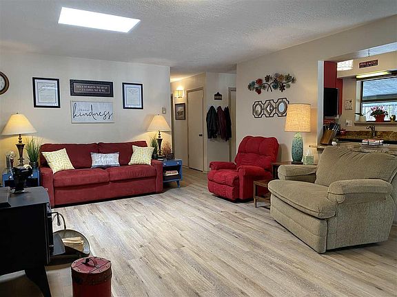 This 2 bedroom 2 bath cabin is located within walking distance of the Monte Verde Lake in a quiet neighborhood and backs up to the greenbelt. Enjoy time out on the large deck observing the deer and wildlife. Inside has been completely repainted in a neutral color (one bedroom is pink and purple, but we have the paint so that you can paint to match the rest of the house). The following are all NEW: vinyl plank flooring throughout, microwave, range and refrigerator, granite counters in kitchen and bathrooms, light fixtures, water heater, bathroom sink, efficient Kuma wood-burning fireplace with blower, all electric outlets and switches, new garage door opener, and septic tank. Home sold mostly furnished. Kit Carson Broadband on property and can easily be extended to the house for about $1,000.