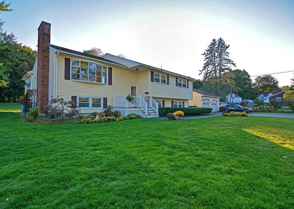 Family memories begin here! Spacious, updated split level ranch with spectacular entertainment area inside and out. A tucked away level acre lot with a beautiful in-ground pool with a large paved deck, irrigated landscaped lawn, & perennial garden for cookouts/parties. This home boasts a light/bright kitchen with a butcher block island, a pantry for additional storage, space for a breakfast nook and a slider to a deck overlooking the pool. The main floor has a living room with a fireplace and bay window, a good sized dining room and four season sunroom. Master Bedroom with half bath and two other bedrooms complete the main floor. The lower level has a large back to front family room, office, 3/4 bath and two bonus rooms for working remotely or guests. A detached, heated two car garage has plenty of space for a workshop. A commuter's dream, close to routes 93/495 & local amenities while still feeling like a peaceful retreat. All offers to be in by 5:00 On Tuesday 10-13-2020.