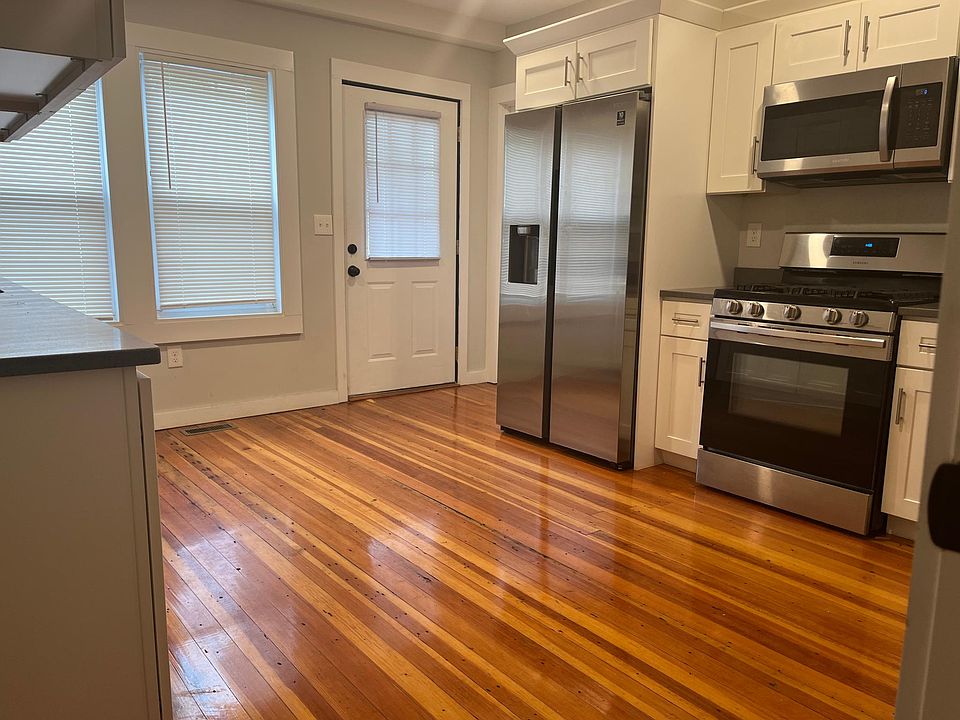 $2250 plus utilities. . Enjoy the comfort of this spacious 2-3 Bedroom, 1.5 Bath Townhouse in Easthampton close to the bike path. Features include: Separate off street parking for 2 vehicles, propane gas heat and Central Air Conditioning for year round comfort, modern stainless steel appliances including refrigerator with ice maker, gas stove, microwave, dishwasher and quartz countertops and recessed lighting in the Kitchen, Washer and Dryer ar conveniently located in the basement. Additional finished rooms have electric heat in attic perfect for extra space or storage. Wood and tile flooring. Located in Easthampton with easy access to major routes and shopping. Bike Path is located nearby. Full, separate basement. Don't miss out on this great opportunity! Available November 1st. 1 year lease. First month's rent and prepaid last month's rent to Landlord