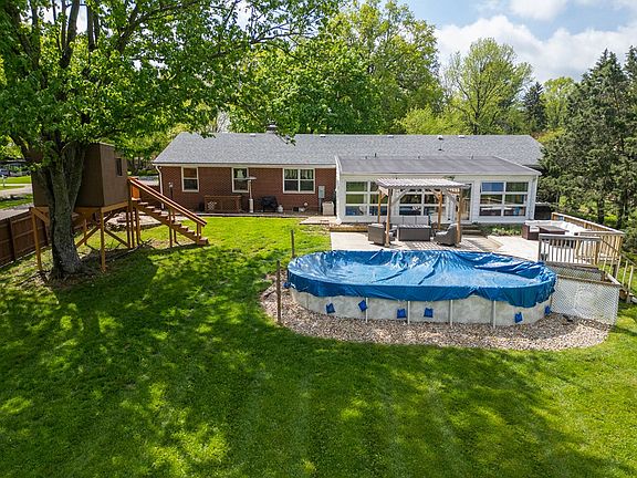 Discover this spacious 4-bedroom, 2.5-bath ranch home offering over 2,500 sq. ft. of living space on a desirable half-acre corner lot. The freshly painted interior features a large living room with a cozy wood-burning fireplace and a primary suite with double closets and a private full bath. The walk-out basement is partially finished with a half bath and mini bar—perfect for entertaining—while the unfinished side offers ample storage. At the rear of the house is a peaceful 4 seasons room. It offers an abundance of light and overlooks the beautiful backyard. Outside, enjoy a fenced backyard oasis complete with an above-ground saltwater pool, newly stained deck, pergola, and a charming treehouse. A rare find with space, charm, and outdoor appeal!