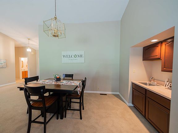If you love golf and are looking for a condo, this is one to see! This condo is on the 5th hole at the Green Hills golf course. The landscaping is beautiful and provided by the HOA. See HOA covenants/bylaws in the documents section of the listing. The kitchen has 2 pantries with plenty of storage and a breakfast nook with views of the golf course. The open living/dining area is spacious, has a wet bar and is large enough for all your furniture. The master bedroom is complete with a large ensuite with plenty of linen closet space, a walk-in closet, and a ceramic tile shower. The den can be used for another bedroom, home office or family room. The sliding glass doors in the living room open into a 3 season sunroom and a 4 tiered deck. The laundry room has a laundry sink and closet for additional, and the 2 car garage has additional storage closets. The furnace and AC were both replaced in 2021. The neighborhood is quiet and just the right spot for enjoying the course.