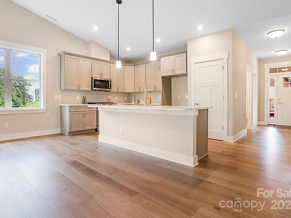 This Pinnacle 2 is a low-maintenance 2-level home with main-floor living. Full-light lower level walkout to a patio/deck with wooded privacy; vaulted & tray ceilings; granite countertops; hardwood floors; gas fireplace; multi-zoned HVAC; tankless water heater; frameless master shower door; & NO YARD WORK. Enjoy the friendly, caring neighbors and social activities plus, the benefits of the Protective Covenants. Community includes clubhouse, fitness center; neighborhood pool; walking trails. Full city amenities with underground utilities, city sewer & water, yet county-only real estate taxes. Convenient to Biltmore Park, only 5 minutes! NOTE: All photos are of similar model. PINNACLE AT ARABELLA - Where the Living is Easy!