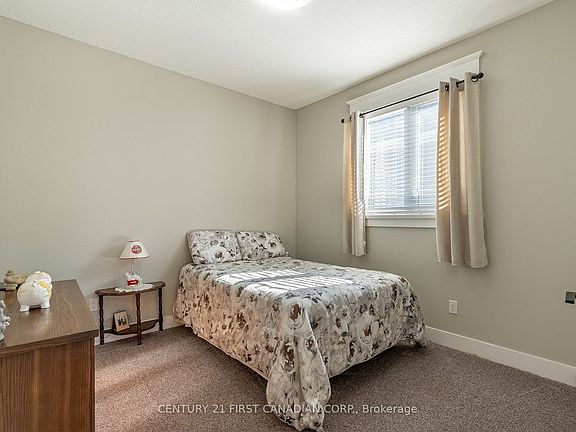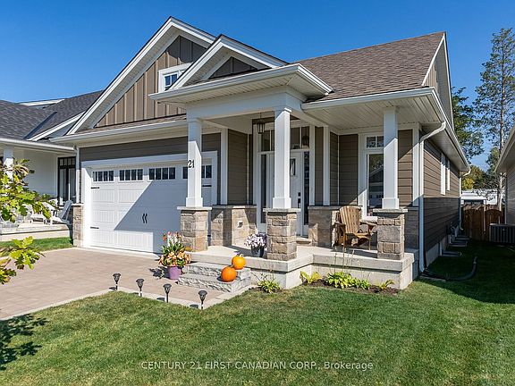 Welcome to 21 Creek Side Place. This charming two-bedroom bungalow, nestled in Grand Bend and near the pristine shores of Lake Huron, offers a tranquil retreat for those seeking the perfect blend of comfort and location. Situated on a quiet cul-de-sac, this home features numerous upgrades that elevate its appeal. From the moment you step inside, you'll notice the 10ft ceilings, including a spacious kitchen with stainless steel appliances and granite countertops, as well as an inviting living area with ample natural light and gas fireplace. The spacious primary bedrooms provide a cozy sanctuary, with an ensuite and walk-in closet. The well-manicured outdoor space offers an ideal setting for relaxation or entertaining. This home combines the peace of a quiet neighborhood feel with the charm of lakeside living, making it a truly exceptional place to call home.