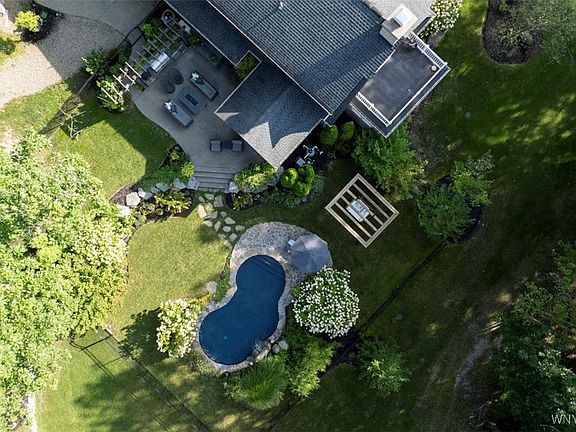 The backyard is a true private oasis, designed for making memories in every season. Picture gatherings around the sparkling in-ground pool, cookouts at the outdoor kitchen and built-in bar, and lazy afternoons soaking up the sun and enjoying the whispering water from the creek below.Whether you're hosting a party, celebrating with friends, or simply enjoying a quiet evening under the stars, this outdoor space is a sanctuary all your own. Nestled at the edge of the Village of East Aurora, this home offers the perfect blend of seclusion and accessibility. In minutes you're connected to all of WNY—including downtown Buffalo and the airport—yet surrounded by nature and history. This beloved village is small, yet sophisticated enough to meet every need. Explore boutiques, galleries, breweries, bakeries, bookstores and landmarks like Knox Farm, The Roycroft and the home of President Millard Fillmore. Whether you're enjoying world-class cultural institutions, or taking a day trip to Niagara Falls or the nearby ski slopes, this home places you at the heart of it all. Three bedrooms with potential for 4th bedroom-currently used as office. Also listed with extra lot B1640688