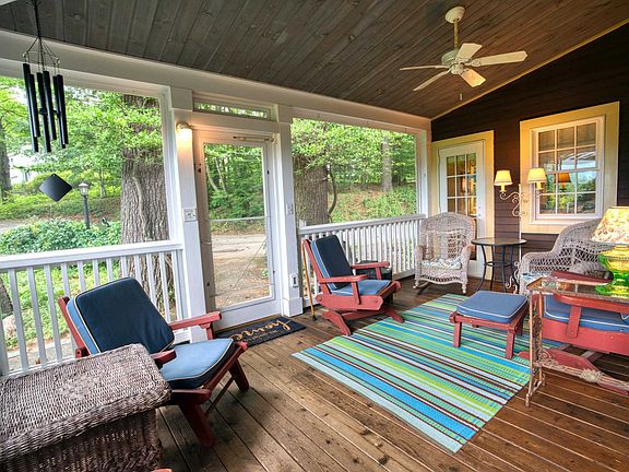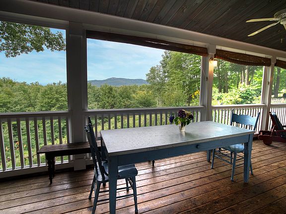 PINE NEEDLES COTTAGE:a spacious 4 BR, 4 BA home in a lovely private location. On 1 acre+ wooded lot, it features beautiful 180 degree views of Mt Monadnock–timeless,yet ever changing. This home is located just outside of Jaffrey Center Village on a private road that is shared with 4 other fine residences. If you enter the house from the upper parking area , you’ll be on the large screened porch looking to the Mountain.The porch is where you will probably spend most of your time in 3 seasons and the adjacent wood fireplaced living room is cozy and comfortable in the winter. The space-saver kitchen is fully applianced and has a tile backsplash.2 good-sized closeted BRs each with a full bath are accessed from the living room. The dining room is located just off the living room and has hardwood floors and 2 corner hutches. The primary BR and bath can be accessed from both this room and from the porch, which has a new metal roof! This BR is quite large and has plenty of room for office work. The 4th BR is on the 2nd floor with great views, a walk-in closet and its own bath. Famed bird sculptor Robert Warfield was the former owner and had his workshop in the full basement which also has a laundry and large family room with built-ins. Recent septic system, Town water, oil boiler, 200 amp electric panel and whole house generator ensure dependable utilities. The property features lovely landscaping and 2 car garage. Fully furnished! A special home deserves a special buyer - Is it you?