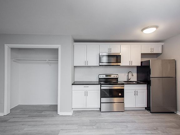 Newly renovated studio apartment. Fresh paint, new floors, new kitchen and new bathroom make this apartment perfect for anyone! There is shared laundry in the basement and one off street parking space included Tenant pays all utilities. The utilities include electric. The heat is electric. 12 month lease. no pets.