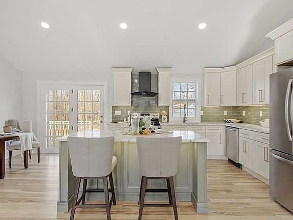 This stunning 4-bedroom, 3-bath residence captures the essence of modern architecture! Completely renovated down to its core, it offers the excellence and atmosphere of a new build. The first floor features elegant hardwood flooring, soaring cathedral ceilings in both the living area and the kitchen, and a contemporary kitchen outfitted with stainless steel appliances. In the heart of the living room lies a breathtaking stone fireplace, setting a cozy and welcoming tone. The primary suite is a sanctuary, boasting a lavish en-suite bathroom and an expansive walk-in closet. The fully revamped basement is equipped with a full bath, bedroom, spacious entertainment area, and a convenient kitchenette. With an independent entrance, the basement is perfect for an in-law suite or additional living quarter. A freshly paved driveway not only enhances the charm but also adds to the home's practicality. A brand-new deck elevates the outdoor experience. This is a Must SEE!!