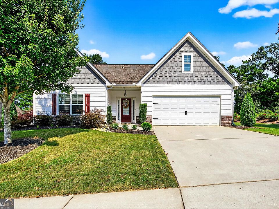 Better than new in Seneca Park in The Parks of Olmsted, this ranch-style home offers 3 bedrooms and 2 bathrooms, with a bonus/ bedroom upstairs. Beautiful hardwood floors flow throughout the main living area, anchored by a stone surround fireplace. The kitchen features granite countertops, stainless steel appliances, white shaker cabinets, and a subway tile backsplash. The primary suite includes a tiled shower, garden tub, and dual vanities. Outdoors, enjoy a large, flat, fenced yard with an extended patio and arbor seating, plus a full irrigation system. The lake community provides a pool, clubhouse, playground, and lake access. Conveniently located just minutes from Piedmont Newnan Hospital, Cancer Center, shopping, and dining, with easy access to I-85 for a quick trip to Hartsfield-Jackson Airport.
