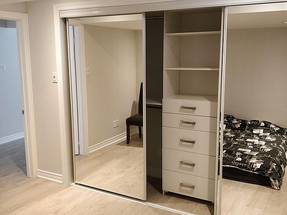1 bdrm fully renovated basement apartment with separate private entrance. Strictly No smoking / No pets/ No fish cooking policies due to serious allergies in a family. Quiet, peaceful, green neighborhood. 7 min to GO station by car. Will best suit a professional or couple. Large living roomwith dining area. Large windows with a lot of sunlight. Full size washer and dryer. Appliances include full size, stainless steel fridge, stove with hood,dishwasher, double sink, microwave. High Speed Internet. One Parking space on driveway is available for renter and included in the rent price. Tenant is responsible for snow plowing on the interlocking route leading to their entrance. Required for rent: Rental Application. Photo ID. Employment Letter.Latest 2 pay stubs. 3 professional references. Current Equifax Credit Report with score. Criminal check. First and last months' rent pay by bank draft or certified check. 10 postdated certified checks. Tenants Insurance