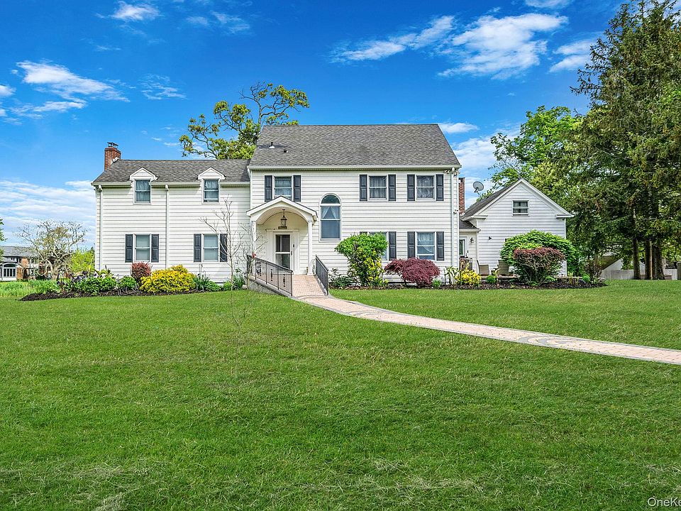 Grand Colonial Estate – Historic South Shore Luxury on Over 2 Acres, Welcome to this exquisite 6-bedroom, 6-bathroom Colonial, nestled on over 2.5 gated acres in the heart of the historic South Shore. Located on a serene cul-de-sac, this almost 5000 sq ft private oasis offers the perfect blend of elegance, comfort, and unmatched character.Inside, the home boasts high ceilings, classic oak floors, and three fireplaces, including a stunning brick dual-sided fireplace. The expansive great room is ideal for entertaining or relaxing with family. The primary bedroom features its own full en-suite bathroom, offering a luxurious retreat. The outdoor living is elevated with multiple-level patios, a private pond, and luscious, picture-perfect grounds.Inground Sprinklers. 4 car detached garage..