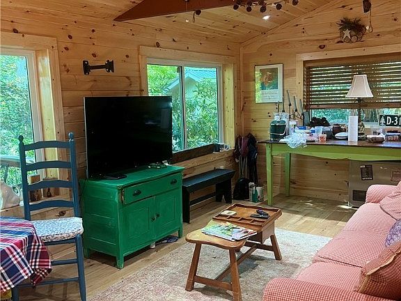 Bring your RV to this charming mountain retreat in Linvile Land Harbor. Tucked away on a corner lot you will find a cozy 276 square feet mountain cabin to expand your living space. The cabin features a bright living area and a bedroom great for guests, and is already heated for year round use. Large cabin windows bring in the beauty of nature, enhancing the serene atmosphere. Relax on the deck with mountain views, wonderful for unwinding or entertaining. Enjoy the convenience of a golf cart garage and dual driveways for ample parking of additional cars. Next to the RV spot there is also a gas line available for a seamless grill hookup. This is a true gem for those seeking a peaceful, low-maintenance mountain escape. Linville Land Harbor offers something for everyone: golf, pickleball, tennis, hiking, a heated seasonal pool, beach, trout fishing, dog parks, card clubs and so much more. Included in the fees are 24 hour security, trash pickup, cable, wi-fi, water and sewer. Come and enjoy the simple life.