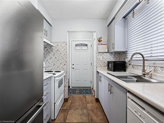 Don't miss this fantastic opportunity for first-time buyers! This cozy 4-level backsplit is located in the family-friendly Secord Woods neighbourhood—close to schools, parks, pools, and more. The home features a modern kitchen with updated countertops, sink, faucet, and tiling, plus newer flooring, baseboards, and fresh paint throughout. The master bedroom includes a walk-in closet, and the spacious rec room has patio doors leading to a new interlocking patio and fenced backyard—ideal for summer BBQs! Smart upgrades include a Nest thermostat and camera doorbell. Other updates: roof (2019), bay window (2020), California shutters (2021), AC (2017). Lovingly maintained and move-in ready.