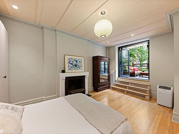 Located on one of the most desirable streets in Greenwich Village is this historic extra wide townhouse (27') with an enchanting terrace. This beautiful sunny floor through is only two flights up where you enter into an expansive south facing living room with 9.5 ft. ceilings and a working gas fireplace. The bedroom off the living room is also awash in sunlight. The north facing primary bedroom is attached to the nearly 400 sq. ft. exquisitely landscaped terrace. You can enjoy entertaining, gardening and relaxing in this private Zen like space. HWF, W/D, through wall A/C, windowed bath, low maintenance and this building has no underlying mortgage. Flexible sublet policy and parents may purchase for fully employed children. Pets are welcome. Located near all the best downtown has to offer.
