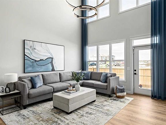 TRICO HOMES SHOWHOME LEASEBACK - Nestled in the vibrant, family-friendly Ambleton community with easy access to amenities. This 2,207 sqft home features 3 bedrooms on the upper floor, 2 full bathrooms, a central bonus room, a main floor bedroom with a full bathroom and spice kitchen, plus an open-to-below great room, ideal for modern living. Premium finishes include built-in stainless-steel appliances, quartz waterfall countertops, upgraded lighting fixtures, and a full-width concrete deck pad. The master bedroom includes a tray ceiling and walk-in closet, while the luxurious ensuite offers dual sinks, a free-standing soaker tub, and a glass and tile curb-less shower. The basement legal secondary suite comes with 2 bedrooms and 1 bathroom. As a Showhome, The Encore Showhome comes with many upgrades and options that offer style and sophistication! photos are representative.