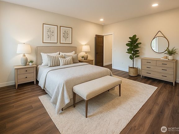 Large islandSpacious primary suiteWalk-in closetsDual vanitiesCorner lotWalk-in pantrySolid core wood-stained doors