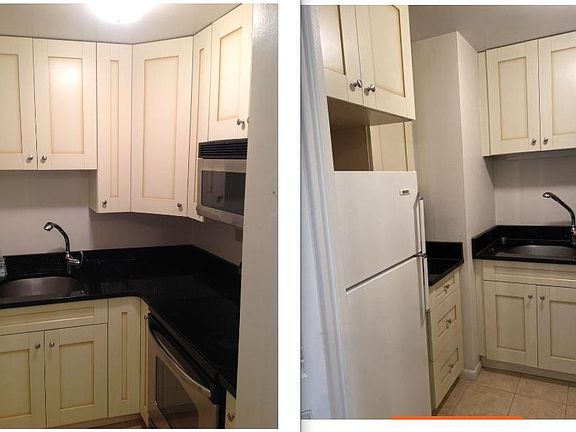 Light kitchen with plenty and tall cabinets. Walk-through closet to bathroom
