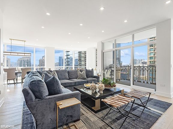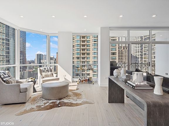 Exquisite contemporary remodel at The Pinnacle - Explore the epitome of modern luxury living in this two bedroom two and a half bath corner residence. This home has undergone a comprehensive transformation and no expense has been spared in the pursuit of perfection. Crafted with meticulous attention to detail, the interior showcases an open layout that maximizes utility while exuding an air of opulence. Greeted by wide-plank oak engineered wood floors that span throughout, Visual Comfort light fixtures, LED recessed and ambient stepped lighting, 8-foot solid core doors, along with automated shades on the floor to ceiling windows, these details create an environment of seamless luxury. The focal point of the living area is a striking full-slab porcelain entertainment wall with an integrated modern fireplace, complemented by a sophisticated antique mirrored wall that graces the dining room. The culinary haven, a marvel of design and functionality, boasts a chef's kitchen adorned with white cabinetry, premium Brizo hardware, Top-of-the-line Wolf and Miele appliances that seamlessly integrate with quartz countertops and a matching backsplash. Step right out to your balcony and enjoy the most wonderful views of the city. The primary suite stands as a testament to refined indulgence. Adorned with a sumptuous custom upholstered king headboard, designer wall coverings, and thoughtfully integrated designer lighting, the suite is a haven of tranquility. The ensuite spa bath is a study in extravagance, featuring marble herringbone heated floors that cocoon you in comfort. An expansive shower with steam functionality takes center stage, complemented by a recessed storage niche and a bench for leisurely repose. The walk-in closet has been professionally built to keep you organized. The frosted glass water closet ensures privacy, while custom cabinetry adorned with opulent Brizo gold hardware adds the final touch of sophistication. Bedroom two is ensuite and offers a generous closet and automated shades. A distinguished parking space, rated A+ in convenience, accompanies this exceptional custom residence. The Pinnacle, a paragon of luxury and amenities, rests in the heart of the city. With attentive on-site management and a 24-hour doorman, the property presents an unrivaled living experience. The Magnificent Mile, the serene Lake, and Chicago's premier dining establishments are all within a leisurely stroll, underscoring the exceptional convenience of this address. Don't miss out on this extraordinary opportunity to claim a residence beyond compare. | Seller to cover up to $10,000 of Buyer closing costs or interest rate buy down|