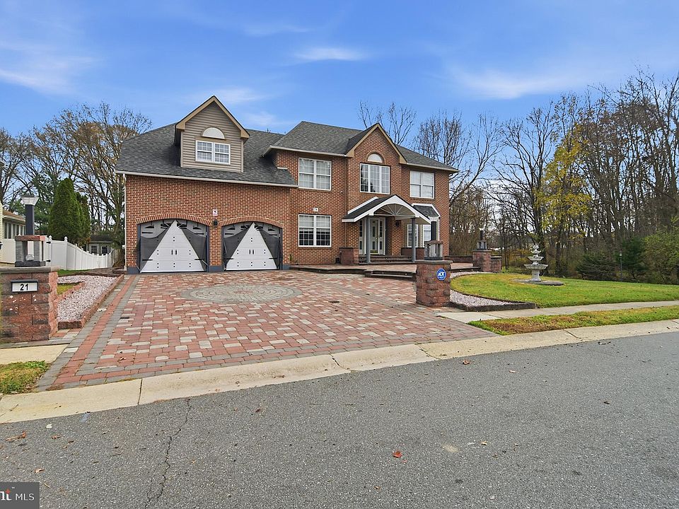 Welcome Home to 21 E. Moyer Drive, A distinguished brick-front residence in Bear, Delaware, offering a curated blend of thoughtful upgrades, generous living space, and refined finishes throughout. From the moment you arrive, the exterior creates a memorable first impression with beautifully crafted paver hardscaping and thoughtfully placed accent lighting that glows at dusk, illuminating the driveway and pathways with warmth and sophistication. An oversized, two car garage adds both function and elegance, providing generous storage capacity and a clean exterior presentation. This home features a dramatic two-story foyer with a statement chandelier, that introduces the interior and showcases the open architectural design. An upper overlook provides a view into the expansive living area, where a stunning wood burning marble fireplace serves as a focal point and anchors the space with warmth and character. Throughout the home, upgraded LED lighting enhances efficiency, comfort, and ambiance. The main level is designed for both convenience and connection, featuring a formal dining room, formal living room, a family room, a dedicated office or flex room, and a four-season room with its own thermostat for year around enjoyment. The kitchen offers granite countertops, ample cabinetry, and an ideal layout for everyday living or entertaining, complemented by a butler’s pantry perfectly positioned between the kitchen and dining room. A full laundry room with a large storage closet completes the main level. Upstairs, the private owner’s suite is a standout retreat. This expansive space includes a sitting area, an oversized walk-in closet, and a private bathroom appointed with granite sinks, LED lighted vanity mirrors, a soaking tub, and a glass block window that allows natural light without sacrificing privacy. The additional bedrooms offer generous space and a comfortable layout, with well-sized closets that provide excellent storage and help keep everything organized. The fully finished basement adds even more versatility to the home featuring a granite wet bar, a spacious recreation area, a clerestory window providing additional natural light throughout an additional finished storage room, and a full bathroom with a rain shower and LED vanity mirror, making this level ideal for hosting, relaxing, or multi purpose living. Throughout the home continue the elevated standard with granite sinks and upgraded fixtures, large windows allowing plenty of natural light, and ensuring continuity in both design and finish. The large backyard offers ample room for recreation, gardening, or future personalization, while the expansive deck provides the perfect setting for outdoor dining, quiet mornings, or gatherings. Ideally located near dining, shopping, major commuter routes, and this home offers a rare combination of space, comfort, and thoughtful design. Schedule your showing today!