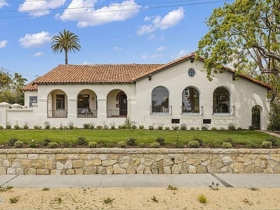 'Quinto' Essential Spanish-Colonial Revival ~ An enchanted 1928 single-level home embodies the distinctive characteristics of the Santa Barbara Mission, a local landmark. In the heart of Santa Barbara on the Upper Eastside, a classic neighborhood conveniently located close to downtown, the Mission, Oak Park, Cottage Hospital and beautiful beaches. The neighborhood is quaint and charming. The residence features five bedrooms and four baths, with an approximate total of 3,791 square feet on four-tenths of an acre. The property has another guest structure with an additional two bedrooms and one bath which encompasses approximately 835 square feet.The home is an architectural marvel with a bright red tile roof, white stucco walls, and a beautiful arcade with terracotta tiles surrounded by a Mediterranean stone wall across the front of the home. The property has an elevated perspective because it's uplifted a few feet above the street level. The home features an arched entryway with a carved wood door, colorful mosaic tiles and intricate wrought iron work. There are decorative Spanish style accents throughout the home which creates a warm and lovely atmosphere.The open floor plan home is filled with vintage light fixtures and alcove lighting, creating a romantic ambiance. The handsomely appointed wood flooring with peripheral inlay throughout the home gives it a luxurious feel. The country kitchen features retro black-and-white checkered tile flooring paired with hand painted tile countertops; around the corner is a sunroom perfect for a breakfast nook and a formal dining area. The showcase living room highlights full length bay windows, wood beam ceilings, and a fireplace mantle with Spanish tiles. There are four bedrooms in the main house and a fifth bedroom which includes private access. Several bathrooms are light, bright and cheery and the primary bathroom has an exquisite Renaissance-inspired hand-painted mural.The backyard is designed for entertaining and features a fan-shaped swimming pool. The house is flanked by large front and back yards with manicured rose, lavender and camellia gardens. The property is one of the most picturesque homes in the Upper Eastside maximizing both indoor and outdoor living. Per a letter from an architectural historian in July 2022, the property has historical significance and is eligible as a Structure of Merit by the Historic Landmarks Commission of Santa Barbara.