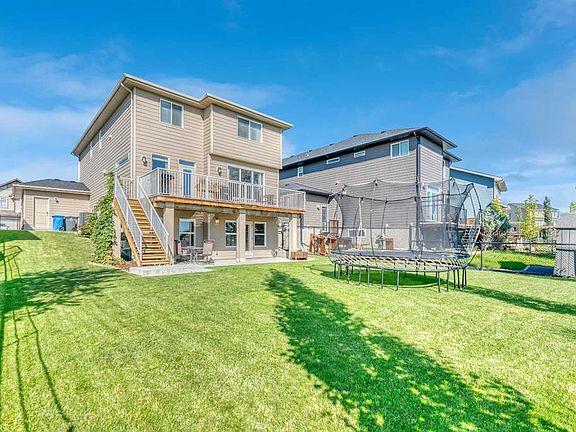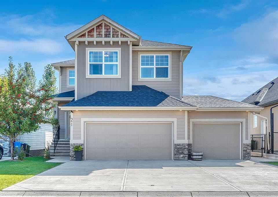 Discover refined family living in the prestigious community of Air Ranch—Okotoks’ premier estate neighborhood known for its wide-open skies, walking paths, and quiet, family-friendly atmosphere. This impressive two-story walkout sits on a generous, landscaped lot with underground irrigation and a fully fenced backyard. Inside, a bright, open-concept floor plan welcomes you with sun-filled living spaces and durable luxury vinyl plank flooring throughout the main level. At the heart of the home, the stunning kitchen is both stylish and functional, showcasing ceiling-height cabinetry, granite countertops, stainless steel appliances including a gas range, and a walkthrough pantry that connects seamlessly to the mudroom and heated triple garage. The kitchen flows effortlessly into the dining and living areas, making it ideal for both everyday living and entertaining. Just beyond, an elevated deck with a BBQ gas line and stairs to the backyard extends the living space outdoors. Upstairs you will find a spacious family room, and three bedrooms, including a spacious primary retreat with a spa-inspired five-piece ensuite and walk-in closet. A second full bathroom and a laundry room with a gas dryer—helping keep utility costs low—complete this level. The partially developed walkout basement adds flexibility for future expansion, while comfort throughout the home is enhanced by dual-zone climate control, central air conditioning, and built-in speakers. The walkout level features a large concrete patio with power for a hot tub, conduit for an additional gas line, and electrical to the southeast corner of the lot to provide power for a shed. The attached triple garage is heated, wired for sound, and offers EV power. Air Ranch offers a rare balance of estate-style living with small-town charm. Residents enjoy quick access to parks, playgrounds, and scenic walking paths, while being just minutes from Okotoks’ vibrant shopping, dining, and recreation amenities. Families will appreciate proximity to schools, and commuters will value the easy drive into Calgary. A home that blends comfort, style, and functionality—set in one of Okotoks’ most desirable neighborhoods. Welcome to 21 Ranchers Crescent.