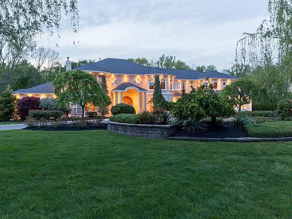Once in a while art is created with brick mortar....This 7 bedroom Colts Neck estate is an eclectic blend of Spanish/ Mediterranean style with rustic accents--perfectly uniting the 2 styles --luxury and country in one home. This magnificent 6+acre estate is nestled on a cul-de-sac amongst a private wooded backdrop where one can enjoy wildlife, trail riding and hiking. Resort like backyard offers custom in ground sparkling pool and spa, South American stone terraced patios with balusters, built in BBQ. Ultimate attention to detail is evident throughout this custom built estate with extraordinary artfully detailed Italian tile designs, custom woodwork, and stunning architectural details/ accents throughout. The sophistication will appeal to the most savvy and discerning buyers. Truly a home for the Connoisseurs of life....You will be delighted as you enter through the double custom doorway into stunning, dramatic 2 story foyer featuring detailed iron and wood floating Cinderella stairs. Architectural details include imported Italian tile, custom made dome ceiling which mirrors the floors, custom molding, plaster work painting. Gourmet kitchen offers custom glazed cabinetry, oversized two tier island, granite counters, Viking and Subzero appliances and eat in breakfast nook overlooking private oasis. The Elegant Dining Room can accommodate guests of 20+and features custom ceiling which mirrors the Italian floor tile work. Magnificent 2 story sunken Great Room with stunning floor to ceiling stone fireplace and custom built in wall units. The Rustic Billiard room compares to none with authentic driftwood beams, wood and mosaic tile floor, wood burning fireplace surrounded with stone and a "log cabinesque" design. Master suite with gorgeous balcony, gas fireplace, walk in closet and luxurious bath with steam shower, custom marble vanities, Jacuzzi and fully tiled walls. Raised stone patio with balusters, basketball court and built in BBQ in your yard oasis. Quality construction including Superior Solid Wall Foundation, radiant heat throughout, and walk out basement.