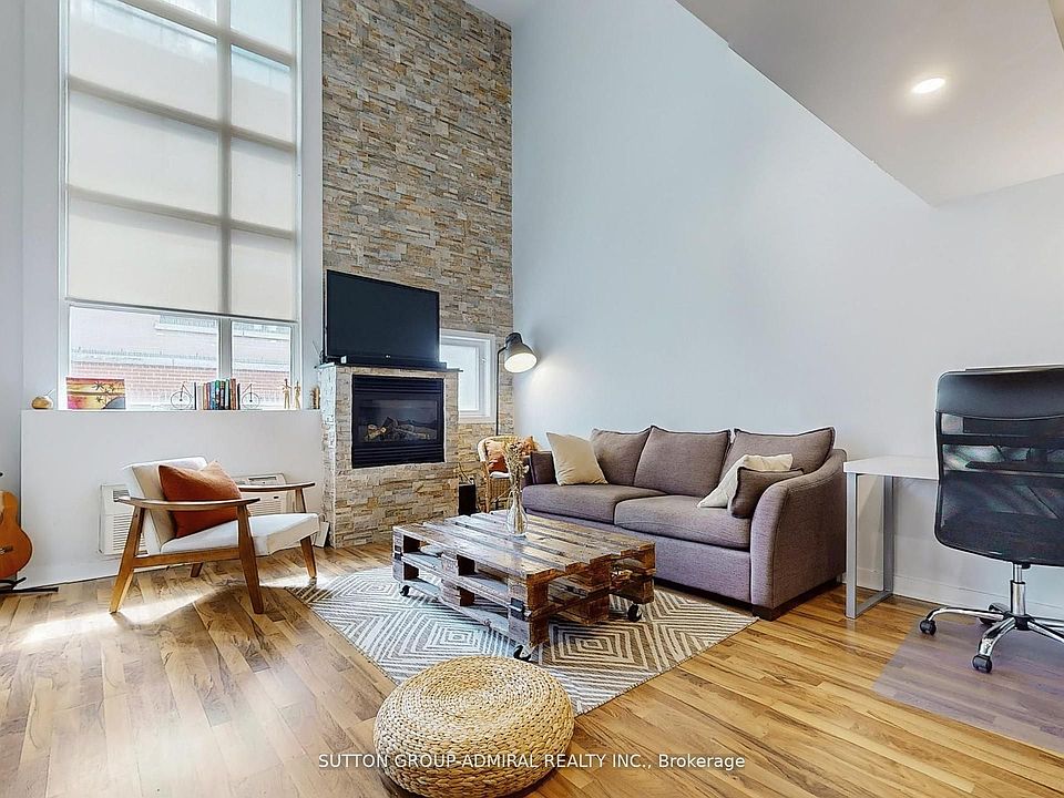 Discover Earl Lofts - a boutique, low-rise community offering a unique alternative to the typical downtown condo. This two-storey loft was designed with soft-loft enthusiasts in mind, showcasing dramatic 16+ foot ceilings and oversized south-facing windows that flood the home with sunlight and showcase its character. The main level features an open, functional layout with a modern kitchen, stainless steel appliances, granite counters, and a cozy gas fireplace. Recent updates include new lighting, custom window coverings, and fresh finishes throughout. A private balcony extends the living space outdoors.The second level is dedicated to a loft-style bedroom overlooking the living area, balancing privacy with an open, airy feel. Set within a peaceful gated courtyard, this residence combines a sense of retreat with community charm. With unbeatable walk, transit, and bike scores, you'll enjoy effortless access to Yonge & Bloor, Rosedale Valley Trails, The Village, Eataly, Equinox, and more. Tucked away on a quiet dead-end street yet minutes from the city's core, this rare offering delivers both tranquility and convenience in one. Extras**Exterior staircase is in the process of being restored by the condo corp.