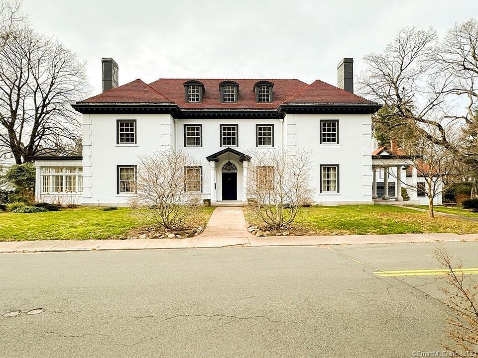 Welcome to 21 Ellington Avenue! This stunning colonial is ready for its next owner. The curb appeal is one to adore with its white stucco exterior, red tile roof and its matching chimney stacks. Other exterior features include an oversized garage, and two covered patios with columns. One overlooks the backyard that offers a heated, in-ground pool right next to an enclosed (stone wall) garden area. The interior is adorned with hardwood flooring throughout, detailed wood trim and wainscotting, exquisite fireplace mantels and patterned ceilings. Updates include a new HVAC system, refinished flooring, tilework, a fresh coat of paint, updated kitchen and bathrooms. When entering the home, you are greeted by an elegant foyer. Adjoining the foyer is a library with built-in bookshelves and a fireplace. The entertaining rooms do not end there with this home having a formal living room, a family room, a sunny sitting room as well as a formal dining room. The eat-in kitchen features new tile flooring and is centered around an island. Off of the kitchen are both the pantry with cabinet space galore as well as the laundry room. The second floor features all six bedrooms with three of them having fireplaces. Two bedrooms have shared access to one bathroom with there being another two bedrooms and full bathroom in one wing. Another wing has a different access with two bedrooms and a full bath. The attic is completely finished with a great room. Do not miss the opportunity to see this home!