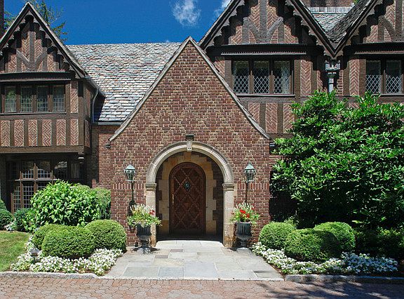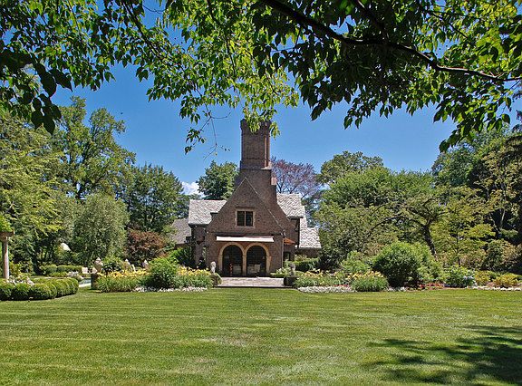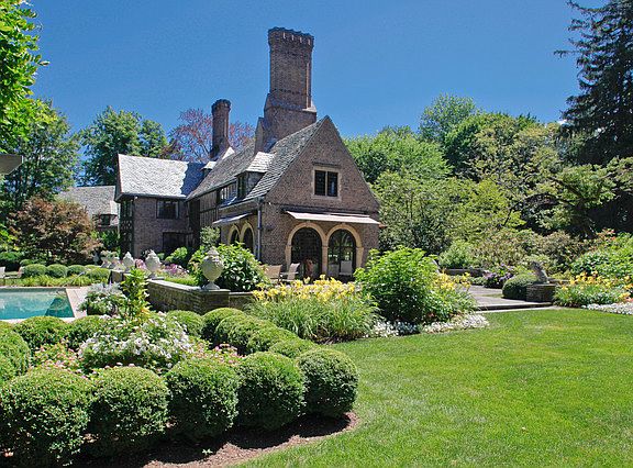 A rare opportunity to own a spectacular village estate on over one and one half acre of glorious property. Always admired, unsurpassed in location and setting, it stands as architect Lewis Bowmans crowning achievement.The exterior illustrates Bowmans dramatic interpretation of English architecture- tapestry brick in herringbone and diamond patterned design, clusters of handsome chimneys, a heavy textured slate roof, gables, expansive leaded windows and his enchanting use of half -timbers.Behind a handsome pillared stone wall and mature rhododendrons, a wide circular drive leads to the prestigious entrance. Inside, the broad reception hall introduces stunning principal rooms of beautiful authenticity. The sensational step-down living room is adorned with a beamed ceiling, limestone fireplace, oak paneled walls and broad leaded windows. Beyond, a solarium with three walls of arched leaded windows and doors opens to the fabulous terrace embracing the entire rear of the house. From the reception hall beautiful arched double doors lead to a magnificent walnut paneled library with period fireplace and a gorgeous dining room with expansive windows overlooking the sprawling property. A delightful morning room, again with arched leaded windows and original tile floor is adjacent to the library, as well as to the well equipped eat-in kitchen. Off the kitchen is a rear mud room/service entrance, back stairway to the 2nd floor and entrance to the garage. A cloak room and powder room off the main hall serve the 1st floor. Upstairs there are three en-suite double bedrooms, a smaller bedroom, plus a lavish master suite with dressing room and bath. In addition, the 2nd floor has servants quarters consisting of two rooms and a bath with a back stairway to the first floor.The lower level is spacious with a finished playroom with fireplace, ½ bath, laundry, abundant storage rooms and utilities.The property is fabulous with swimming pool, an expansive terrace with sitting walls, formal gardens, gazebo and enchanting garden shed. A generous driveway serves garaging for four cars. This outstanding new offering is just moments from town, transportation and Bronxvilles renowned schools.