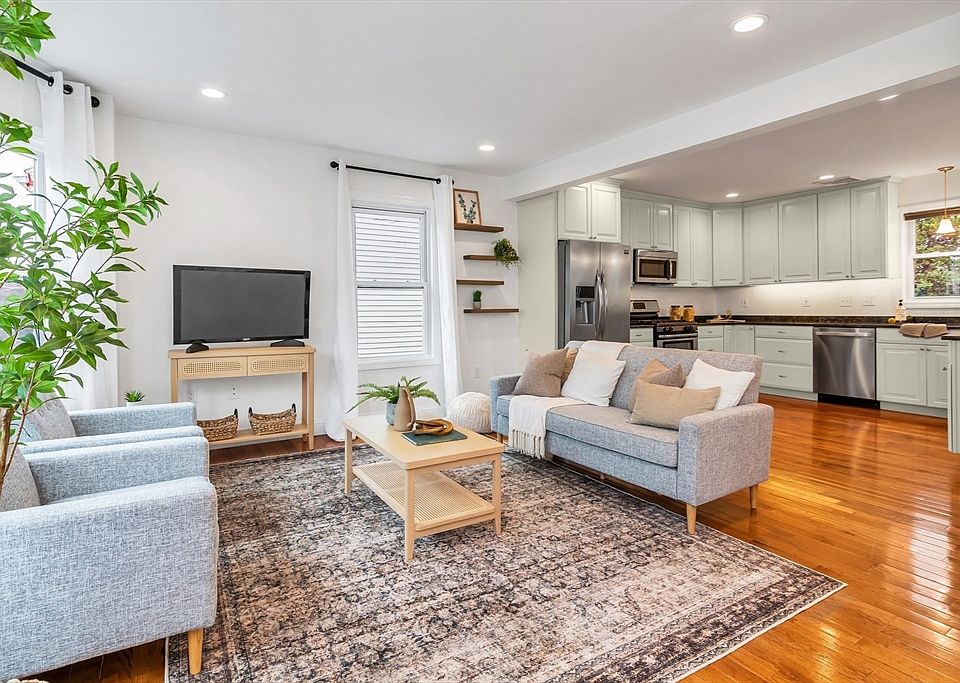 Located in the heart of downtown Salem, this fully updated 4 bed 3 bath townhouse offers 1,663 sq ft of thoughtfully designed living space. The open-concept main level features a sun-filled living and dining area, chef’s kitchen with peninsula seating, quartz counters, stainless steel appliances, wine fridge, full bath with in-unit laundry, and two bedrooms. Upstairs includes a bright and spacious primary suite with skylights, private bath, and a walk-in closet, plus an additional bedroom and full bath. Central AC, Nest thermostats, and smart LED lighting provide comfort and convenience. Enjoy easy access to world class dining, Collins Cove, the Salem Commuter Rail, Historic Salem Common, and local bike and jog trails, all within one mile. Set in one of Salem’s most inviting neighborhoods, this home offers a blend of privacy and access. Updated systems and natural light throughout make this a low-maintenance option for buyers seeking space, efficiency, and style.