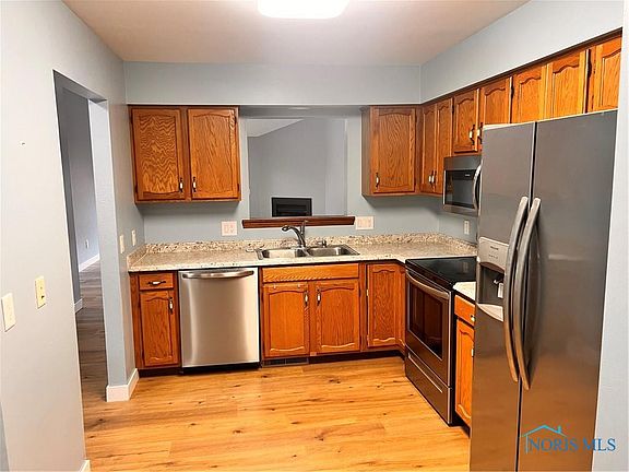 Nice, secluded two bedroom condo on a dead end street. Attached two car garage & private deck. New flooring throughout and new interior doors & trim. The living room features vaulted ceilings, skylights & fireplace. SS appliances & both baths have been nicely updated. Furnace and central air new in 2022. Close to the HWY, shopping & Downtown Perrysburg. Schedule your showing today.