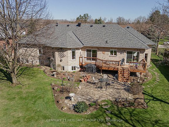 Welcome to your custom built raised bungalow, offering 3700 total square feet of combined living space in a stunning 100 by 200-foot landscaped lot in Everett. The main level features immaculate design with a spacious kitchen, dining area, living room, den , and three bedrooms, including a luxurious ensuite off the primary bedroom. Sliding patio doors provide seamless access to the large family room, workshop, cantina and office/bedroom with a 3-piece ensuite. The heated double car garage includes a storage lift and convenient access to both levels. Outside, the custom-designed yard showcases a gazebo, garden shed and in-ground sprinklers fed by their own sand point water supply. Enjoy the tranquility of backing onto a park, making this home a true retreat.