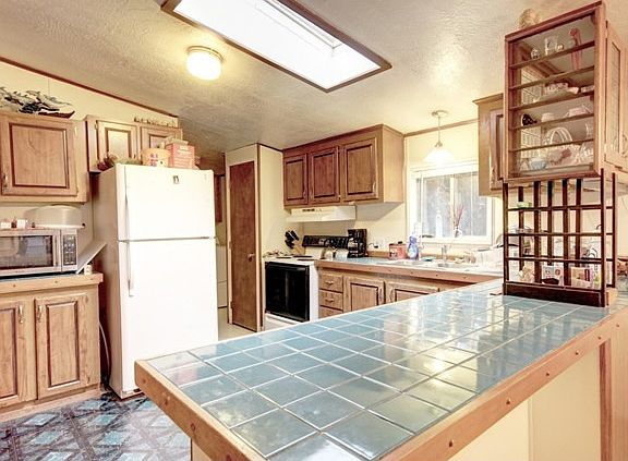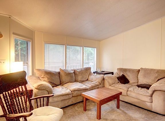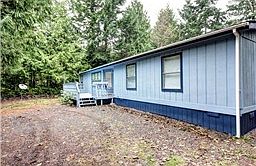 Affordable home on corner lot very close to Port Townsend. Home has good-sized living room, family room and kitchen with breakfast bar. Master bedroom with attached bath is on one side, additional two bedrooms on the other. Pellet stove keeps home cozy in the cooler weather. Newer roof and siding. Separate utility room. Vaulted ceilings with skylight. Front and back decks. Home is on leased land. Lease is $350 per month. Large shop for storage or projects. Spacious yard. Not far from bus line.