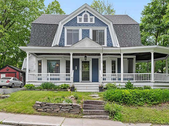 Welcome to this beautiful Barre City Vermont home where old world charm meets contemporary living! As you come up the steps the lovely wrap around porch provides ample space for entertaining, to curl up with a book and maybe catch a nap on a rainy sweet summer day! The interior soft color palette showcases the beautiful hardwood floors throughout. The recently remodeled kitchen is stunning and features stainless appliances, granite countertrops and updated lighting. From the driveway the rear entrance offers a large mudroom area, additional washer and dryer hookups and a first floor bathroom. The main level bedroom is also a great flex space for a home office or playroom. Other newer improvements include a 80 gallon high efficiency heat pump water heater, porch decking and a chimney liner installed in 2018. The garage has a new roof installed by the current owners and the home is wired for several electric vehicles. Upstairs you will find 3 nice sized bedrooms, a large laundry area, pretty bathroom and a huge walk-in closet and dressing room. The large attic provides more storage space and could be converted into additional living space! This home is a beauty, truly move-in ready for the next owners!