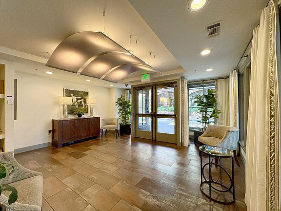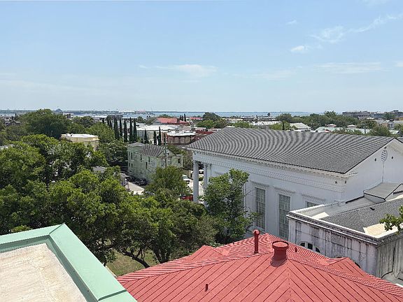 Walk everywhere! Corner unit (approx. 1,228 sq ft) in Charleston's Historic District, 100 yards from King St. This 2-bed, 2-bath gem, larger than most in the 2007-built building, boasts an open design with 9 windows and overlooks charming George St. Features fully updated bathrooms, kitchen countertops, and flooring, with hardwood in master. The guest bath connects to guestroom and hallway, ideal as a second master. Enjoy secured parking, key-coded entry, elevator access, dual lobbies on George and Society St, a gym, courtyard terrace with grills, and rooftop deck with stunning bridge, harbor, and sunrise-to-sunset views. This upgraded condo blends luxury, serinity, and prime location. Available furnished or unfurnished, negotiable. Wall easel in living room will be removed, wall repaired