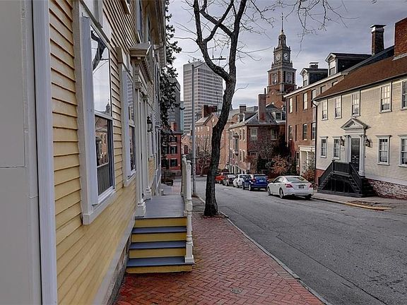 John Pitman House c 1795 This elegant Georgian Colonial has been beautifully renovated for 21st century living. The entry hall is flanked by graciously proportioned living and dining rooms each with decorative fireplaces. The fully equipped cook's kitchen has a gas fireplace with pantry and laundry room that opens to a delightful family room which steps to a wonderful city garden. The second floor has three bedrooms each with an ensuite bath, and a sunlit study. Two additional bedrooms, full bath and family room with exposed beams and skylights complete the third floor. Tucked just to the south of the Brown Campus on College Hill, this delightful home is within walking distance to Downtown, the universities and the train. 21 George Street, the perfect in-town address.