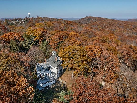 Amazing opportunity to own a home with endless views of Downtown Hartford and 10 acres of absolute privacy This custom-built 4 bed, 3.5 bath contemporary home is the perfect retreat. Drive into the newly paved, circular driveway & cross a bridge to get to the front door. You will immediately fall in love with the lifestyle this home has to offer. The foyer steps down into the oversized & dramatic living room/ dining room combo. The soaring, vaulted ceilings & huge windows allow optimal natural light, and city views from every corner. There is also hardwood floors, a wood burning fireplace and recessed lighting. Additionally, living room has sliders that lead to the deck that overlooks the huge, private yard. The eat-in kitchen is spacious offering white cabinetry, chic white countertops and a 2nd wood burning fireplace. The modern peaked window at the rear of the kitchen is ideal for capturing views while you sit around the kitchen table. The main level also features a family room/study that is cozy & complete with a mini bar hidden in the closet The second floor features the master suite & a separate office area. The master suite has rows of windows providing gorgeous views as well as a private balcony. There is plenty of closet space, plus a walk-in closet and a full bath. The bedroom level has the remaining 3 beds, 2 full baths & another office nook. The exterior of the property features multiple decks, a 2-car attached garage & central air. You can make this your oasis