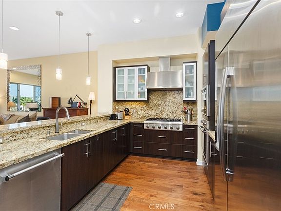 Highly upgraded penthouse Residence A1-A located on the fourth floor with panoramic views and steps to the Clubhouse, featuring approximately 1,337 square feet of living space, two bedroom, two bathrooms, 2 car underground parking side-by-side with private storage. Home includes, European dark cabinetry, stylish Venetian Gold granite slab counter top with full back splash, Thermator stainless steel GE appliances in kitchen, custom drapes & paint throughout, beautiful Walnut hardwood floor in kitchen, living & dining room, custom carpet in bedrooms, custom designer built-ins in living room, custom built-in desk in master bedroom, and side by side washer / dryer with storage in laundry area. The private open terrace is perfect for entertaining or simply relaxing while enjoying the gentle breeze and stunning views. The 8,000 square-foot clubhouse / recreation center provides you with a bounty of amenities such as two Jr. Olympic saline pool, three outdoor Jacuzzi / spas, barbecue pavilion, state-of-the-art health fitness center, one outdoor half-basketball court and one pickle ball court. Live in Orange County’s newest, resort-style & recreational Oasis master planned community…The Central Park West.