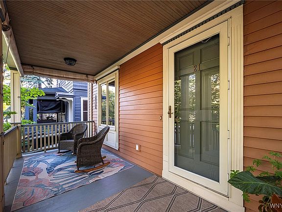 Come visit this incredibly charming, wonderfully maintained and thoughtfully updated, Elmwood Village home, and we promise you won't want to leave! The first floor welcomes you with a spacious foyer, formal living and dining rooms, and an open, renovated kitchen. Hardwood floors, pocket doors, and warm wood paneling and cabinets, create an inviting atmosphere for entertaining friends and family, or a cozy dinner for one. The second floor has three beds and one full bath; with one bedroom currently used as an expansive closet and dressing room. The third floor-with the recent addition of a sprinkler system-makes a private, yet spacious primary suite, with cozy sitting room and second full bath. The generously sized front porch will make you the envy of your friends, and the private backyard creates an ideal space for quiet reflection or outdoor celebrations. The many recent updates include a new FHA furnace and A/C (2017,) on demand hot water tank (2019,) tear off main roof and gutters (2025,) new skylights with solar powered shades (2025,) new porch steps (2025,) and 3rd floor fire sprinkler system (2025.) Square footage has been professionally measured. The concrete driveway can accommodate 2-3 cars. This location is fantastic as you are steps to Elmwood Ave, Delaware Park and the AKG and Burchfield Penney Art Galleries.